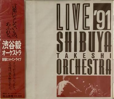 Black and white photo of Shibuya Takeshi Orchestra performing live in 1989.
